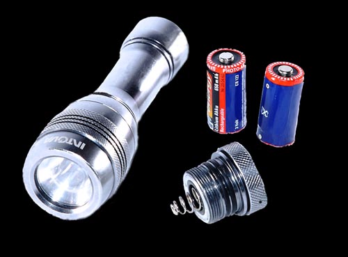 Beim Einschalten fiel mir als erstes die große Korona auf, kein Hotspot sondern ein großer Streulichtkegel wird sichtbar. Dieser große Lichtkegel geht allerdings zu Lasten der Helligkeit, im ersten Sichtvergleich zu den anderen Intova-Lampen schwächelte die Mini schon. Da die Mini als Videolampe konstruiert wurde sollte die Helligkeit reichen, hat man doch meisten 2 davon an der Cam befestigt. Angetrieben wird die 4,7W Cree-LED durch zwei CR123-Akkus mit 650mA/h (Ladezeit ca. 90 Minuten), damit soll die Cree-LED laut Hersteller ca. 130 Lumen schaffen.