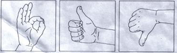 Um Missverständnisse zu verhindern habe ich vor ca. 3 Jahren die Unterwasserzeichensprache in der Veranstaltungstechnik eingeführt. Da ich oft von Sängern “Daumen-Hoch”- Zeichen bekommen habe, und diese aber unterschiedliche Bedeutungen hatten gibt es hier nun einen Rat: “Daumen hoch” heisst nicht “Alles OK” sondern lauter.