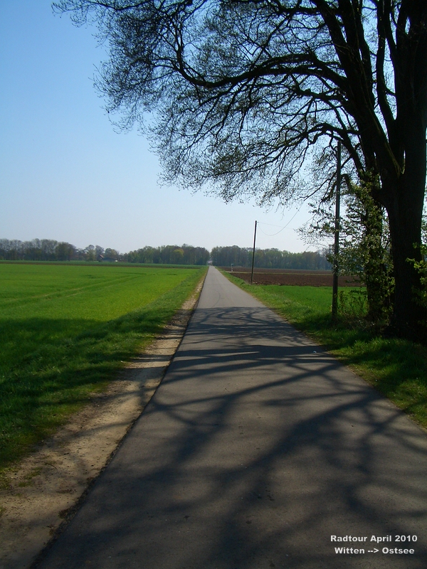Tag 3 Von Diepholz starteten wir trotz Achillessehnenprobleme meinerseits um 8:30 Uhr Richtung Barnstorf um über Heiligenloh in Twistringen die erste Zwangspause nach 43km einzulegen. Die Nähe zu Norddeutschland wurde langsam spürbar, der Gegenwind verlangsamte unsere Geschwindigkeit um gefühlte 30%. Die Tagesstrecke führte über endlos langgezogene Radwege mit interessantem Bewuchs und typischen Bauernhöfen mit angeschlossenen Reitställen.