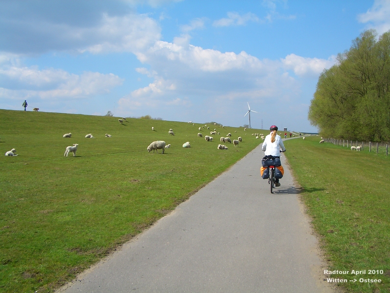 Wir fuhren danach wie in der GPS-Strecke geplant entlang der Elbe bis irgendwann Schafe den Weg versperrten :-)